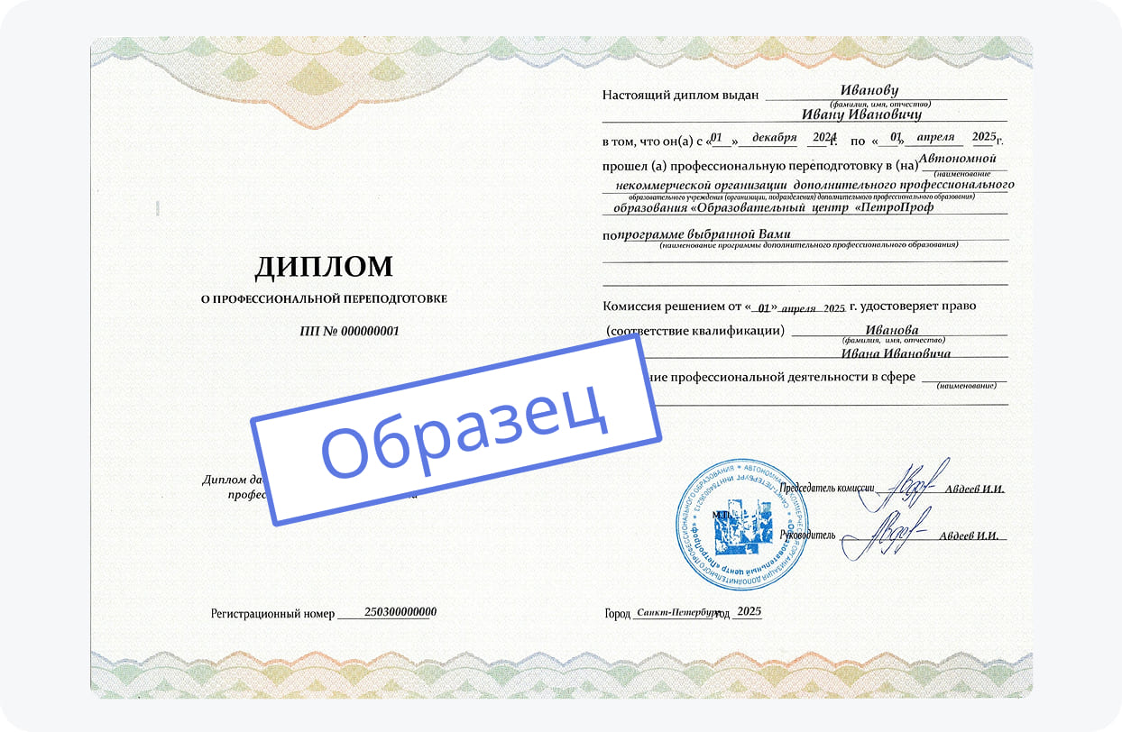 Программы профессиональной переподготовки в "ПетроПрофе" направлены на формирование у слушателей необходимых профессиональных компетенций, которые включают как теоретические знания, так и практические умения. В процессе обучения вы изучаете современные методы и технологии в выбранной сфере, осваиваете профессиональные стандарты и требования работодателей.